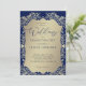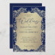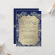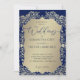 Este convite para o casamento emparelha um rico fundo azul com intrincado damask dourado detalhando um olhar de luxo eterno. O quadro do ouro do ornamentado envolve um painel de ouros suaves, colocando o foco nos nomes do casal e nos detalhes do evento em um elegante equilíbrio de tradição e refinamento. O contraste do azul profundo com o ouro luminoso cria um estilo real e sofisticado, perfeito para casamentos, aniversários e comemorações formais.