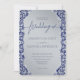 Convite para Casamentos tema damasco Azul e Pratea