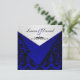 Este convite para casamentos tema damasco, azul e preto, com aspecto dramático e formal, tem a aparência de dobras de frente que acrescentam à elegância. Isso adicionaria um toque de na moda ao seu casamento, ou outro evento especial. O texto e o papel são todos personalizáveis. Se você precisar de outros itens correspondentes, envie um email para niteowlstudio@gmail.com. Os itens correspondentes existentes são mostrados abaixo.