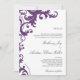 Este convite para o casamento apresenta um elegante design amortecedor em roxo de ameixa no lado esquerdo de um fundo branco. A fonte da cinza é uma combinação de impressão moderna e um roteiro elegante. O verso do convite contém um design branco damask que vem de baixo com um círculo personalizado, sobre um fundo roxo de ameixa. Perfeito para uma variedade de temas elegantes de casamento! Veja os elementos coordenadores do nosso compro! April Ornaments Brushes cortesia de Jen Furlotte, pixelsandicecream.com