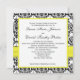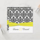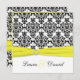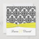 Este convite para casamentos tema damasco preto e branco tem uma fita impressa amarela e uma fivela de joia IMPRESSA nela. O texto e o tipo de papel são personalizáveis. Se você precisar de itens correspondentes, envie um e-mail para niteowlstudio@gmail.com com sua solicitação. Os itens correspondentes são mostrados abaixo. ****SAIBA que originalmente postei este design com os nomes em amarelo no design, e eles NÃO aparecem no convite, então se você mudar as cores da fonte para amarelo, provavelmente não conseguirá ler o texto.
