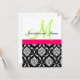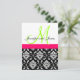 Lindo logotipo de casamento monograma com iniciais de monograma verde e nomes pretos em uma fonte elegante, listras cor-de-rosa-quente ou banda acrescentam a esta adorável cor damasco branca e negra floral para criar um convite de casamento único que seus hóspedes irão felicitar. Essa design é simples, mas elegante e, por usar sua inicial de monograma, será de um tipo. Design do Convite de Casamento por Elke Clarke ©2010. Gráficos licenciados. Personalize com suas informações e cores de casamento. Precisa de ajuda para criar um pacote de casamento com itens correspondentes, como cartões de receptáculo de recepção RSVP anne, entre em contato com luxuryweddinginvitations@gmail.com