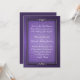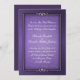 Adorável convite de casamento tema damasco roxo, com um rico fundo de cor damasco roxo. Os gráficos de um quadro de tom prateado circundam a área de texto mais leve e roxa. Personalize todo o texto para atender às suas necessidades de casamento.