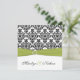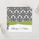 Convite para Casamentos tema damasco Verde, Branco
