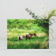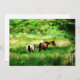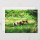 Cavalos pastoreando num campo de verão. Aquarela.