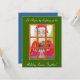 Este é um convite bonito para ajudar a iluminar as férias com uma celebração alegre para todos! O convite é decorado com um Papai noel que está no espírito de feriado. A imagem neste cartão mostra Papais noeis vestindo um sorriso enquanto ajuda alguns amigos iluminando as velas Menorah.