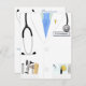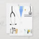 Um convite divertido para uma festa de formatura de licenciatura médica. A frente apresenta um gráfico de um casaco com empate e personalização disponíveis no nametag. A parte de trás do convite dá muito espaço para detalhes da festa. Arte vetorial original pela Menagerie de Night Owl 2015.