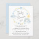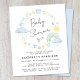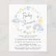 Concurso de chá de bebê bicho-feiticeiro, orçamental, com cores-d-água azul pastel e amarelas de um arco-íris, sol, corações, estrelas, luas e nuvens.
