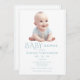 Bebê menino azul moldura doce bebê sorrindo em um fundo branco. Tipografia azul. Elegante e simples ao mesmo tempo. Perfeito para o chá perfeito do bebê. 100% de satisfação do cliente com o "Zazzle"