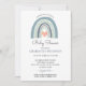 Simples e fofo convite para chá de fraldas do garoto do arco-íris. Padrão do arco-íris no verso do convite. Um estilo delicioso e caprichoso. Um estilo delicioso e caprichoso. Consulte a coleção de cheios de produtos correspondentes para este design em: https://www.zazzle.com/collections/boho_watercolor_rainbow_boy_blue_baby_shower-119057643899551113