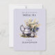 Um fundo bonito de lavanda de concreto com chá e flores convidando convidados para um chá de noiva