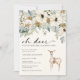Este elegante convite para chá de fraldas 'oh veado' de inverno apresenta lindas folhas e bagas azuis poeirentas pintadas à mão, flores de anêmona creme, verde-salva e pinecones organizados como um quadro de na moda num marfim | fundo creme e veado aquoso adorável. Encontre itens correspondentes na Coleção de Casamentos Florais Blue Dusty de inverno.