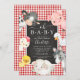 Oh Baby Farm Animal Chá Adoráveis animais de quintal design com a mais doce vaca, cavalo, porco, assado, pato, pintinho de bebê e carneiro colocados sobre um fundo de gingham vermelho. Sacudir a nossa carta para ver uma surpresa especial com os nossos amigos fazendas bonitos. Visite o nosso compro para ver toda a nossa coleção de amigos bonitinhos de caserna para chás de fraldas neutros, raparigas ou rapazes.