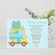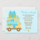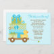 Este convite para Chás de fraldas tem presentes azuis para bebês e um pato de borracha num vagão. Este convite de chá de fraldas moderno e divertido é perfeito para qualquer mãe ser.