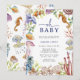 Transforme o seu chá de bebê em um mundo submarino encantador com este convite moderno inspirado no oceano! Nosso convite de chá de bebê Oh Baby Shower subaquático vibrante, divertido e caprichoso apresenta lindos peixes roxos e laranja, águas-vivas rosa e azuis pintados à mão em aquarela, um cavalo-marinho terracota, coral rosa poeirento e um polvo bege fofo que captura perfeitamente a alegria do dia. Encontre produtos adicionais na Coleção Chá de Bebê Under The Seas.