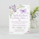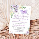 Celebre a chegada iminente com este convite de chá de bebê caprichoso com borboletas, apresentando flores roxas pastéis e borboletas delicadas. Perfeito para homenagear os futuros pais, este design elegante combina charme floral com uma estética suave e sonhadora. O modelo personalizável facilita a personalização de detalhes e a criação de uma lembrança memorável. Ideal para chás de bebê na primavera ou verão, este convite adiciona um toque de magia à sua celebração.