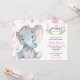 Elefante de aquarela pastel em rosa, cinza e verde para convite para chás de fraldas de menina.