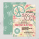 Convite para Chá de Bebê com Tema de Festa Hippie dos Anos 60 – Que incrível, pessoal, confira nosso convite para chá de bebê dos anos 60, fora de série, em verde. Com cores psicodélicas e um sinal de paz tranquilo. O convite perfeito para mostrar a todos que seu pequeno espírito livre está quase chegando. Divirta-se e não se esqueça de mostrar sua personalidade. Paz, Amor e Festa! Bebê Groovy!