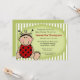 Bebê fofo vestido com um fato de joaninha. Um convite para chá de bebê que será lembrado. Personalize com os detalhes da sua festa.