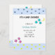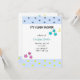 Um design fofo apresentando bordas azuis com estrelas brilhantes. Outras estrelas com rostos e uma lua amarela. Personalize com as informações do chá de bebê conforme desejado.