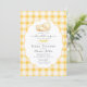 Celebre a chegada iminente com este adorável convite de chá de bebê “Um Pequeno Patinho Está a Caminho”. Este charmoso design apresenta um patinho sonolento em aquarela contra um alegre fundo xadrez amarelo, criando uma atmosfera calorosa e caprichosa de fazenda. A elegante moldura rendilhada e a tipografia em letra cursiva suave adicionam um toque atemporal, tornando este convite perfeito para um chá de bebê com tema de pato, chá de bebê de primavera, chá de bebê de fazenda ou celebração neutra em relação ao gênero. Personalize facilmente as palavras para criar um convite doce que receba amigos e familiares para celebrar o novo pequeno feixe de alegria.