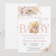Celebre a chegada iminente do Bebê Elizabeth com este adorável convite de chá de bebê com ursinho. Com suaves flores pastéis, tipografia elegante e uma ilustração de um ursinho doce, este design é perfeito para homenagear os futuros pais com estilo. Ideal para chás de bebê para meninas, combina charme e sofisticação, fornecendo todos os detalhes essenciais do evento. Uma lembrança encantadora para os convidados e uma maneira linda de definir o tom para uma celebração alegre.