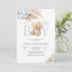 Celebre a chegada de um menino com este encantador convite de chá de bebê, apresentando tons pastéis suaves, rosas azuis elegantes, grama pampas e um ursinho fofo segurando uma fita. O design inclui balões divertidos e tipografia sofisticada, tornando-o perfeito para homenagear os futuros pais de uma maneira calorosa e memorável. Este convite personalizável é ideal para chás de bebê modernos, misturando elegância floral com detalhes caprichosos para deliciar os convidados e criar memórias duradouras.