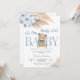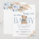 Celebre a chegada iminente com este adorável convite de chá de bebê com ursinho de pelúcia, apresentando flores pastéis suaves e uma ilustração de um ursinho fofo com gravata borboleta azul. Perfeito para homenagear as futuras mamães, este design encantador combina elegância e capricho para definir o tom de uma reunião alegre. Personalize facilmente com detalhes do evento e crie uma lembrança que os convidados irão guardar. Ideal para chás de bebê para meninos, celebrações de primavera ou qualquer festa com tema de ursinho.