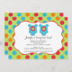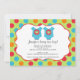 Comece seu evento com o nosso lindo body de bebê roupas para gêmeos Convite de Chás de Bebê gêmeos apresentando as mais doces roupas de bebê gêmeos com bebês corujas em um fundo de bolinhas vermelhas, laranja e azul turquesa. Nosso convite de chá de bebê moderno e colorido é perfeito para a celebração do chá de bebê dos seus gêmeos. Basta personalizar com suas informações e você está pronto! Itens correspondentes, incluindo selos de correio para chá de bebê, adesivos de favor, cartões de agradecimento e adesivos de agradecimento também estão disponíveis em nossa loja. © Dreamlike Magic