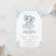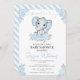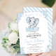 Cartão de convite para o chá de fraldas de elefante azul-claro e de cor aquosa. Um pouco de amendoim está a caminho!