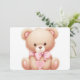 Crie um convite de chá de fraldas amoroso que apresente cor rosa como a cor focal. Excelente para celebrações de chá de menina. A frente apresenta um ursinho de pelúcia bonito e amoroso vestindo um arco rosa com texto que você pode personalizar. As costas têm os detalhes do chá da menina. Parte da coleção de Design cor-de-rosa do Urso de Teddy. Use a modelo para criar seu próprio convite para ursos de pelúcia cor-de-rosa.