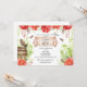 O convite para chá russo apresenta rosas de aquarela, penas, coruja, pássaro e barril.