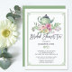 Simples chá de panela elegante com um belo pote de chá verde de aquarela com um lindo buquê floral sobre fundo branco fresco com uma bela fonte escrita à mão. Sacudir nosso chá de casamento convidar para ver uma coordenação para um toque especial extra.