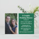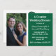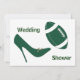 Convite para chás de casamento divertidos feito em verde e branco, com uma área de fotos personalizada, no lado esquerdo do convite. Gráficos de um estilo brilhante verde para saltar chutando um futebol verde e branco decoram o fundo do convite. O texto em branco e verde está pronto para personalizar o seu grande evento. Um convite adorável para o casal.