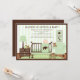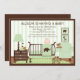 Comece seu evento bem com nosso Chá de fraldas de convite com uma cena de quarto de bebê com um berço, fotos na parede, uma cadeira de noite. Na moda e chá de fraldas moderno Convite para Chá de fraldas em verde e castanho perfeito para um rapaz ou de menina. neutro personalize com suas informações e você está pronto para ir! Itens correspondentes, incluindo chás de fraldas postais, adesivos de favoritos, cartões de agradecimento e obrigado que você também está disponível em nosso compro. © estúdio de cacau