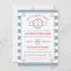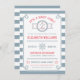 Convite temático náutico com âncora, capitão roda e peixe-estrela. Corre a borda do quadro. A parte traseira da placa tem um fundo listrado. Personalize com seu próprio texto. Por favor, procure na minha loja mais assim. Excelente para as festas de oceano, mar, lago, pré-disquete ou iate. Ilustração original por pj_design.