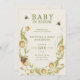 Este Bebê no Bloom no chá de fraldas de código QR apresenta um design de flores silvestres, borboletas e abelhas - margarida | flores camomilares ligadas à armação de texto cuidadosamente escolhido. Uma borboleta fica entre a design botânica de flor silvestre, à medida que as abelhas voam. O verso apresenta o código QR para o registro da futura mãe. Simplesmente personalize o roteiro para suas necessidades com este doce design.