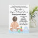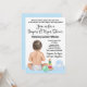 Fralda de convite para chás com um doce bebê com brinquedos em um passado azul bonito.