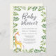 Convide seus amigos e família para comemorar seu chá de fraldas com este simples, mas elegante, Convite para Chá de fraldas Elefante com florais verdes e polkadots amarelos e uma girafa adorável acompanhada por texto escrito à mão. Um belo convite neutro em termos de gênero. Também estão disponíveis itens de coordenação. © Mini Moi Impressões