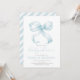 Convite editável de chá de fraldas azul. Perfeito para uma festa do tema de um bebê doce. Possui um arco azul bonito. Todo o texto pode ser personalizado para a sua ocasião.