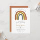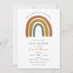 Chá de fraldas com aquarela muda o arco-íris com tons de cor lacrimejados, amarelos e vermelhos corais. e cita "Depois de cada tempestade há um arco-íris de esperança". Personalize com suas informações ou clique em "clique para personalizar mais" para ajustar o tipo de fonte, o tamanho e a cor.
