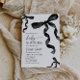 Convite para chá de fraldas com arco de coquete preto-d'água.