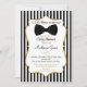 Um convite elegante de chá de fraldas de gravata arco preto e dourado, com falso quadro de sotaque dourado e listras brancas e pretas com texto dourado e preto e uma grande gravata negra. Este convite para o chá de fraldas dos meninos modernos é apenas o bilhete.
