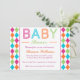 Um convite divertido para celebrar a futura mãe. Este design tipográfico apresenta o padrão de estilo de diamante de eterno em cores brilhantes.
