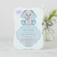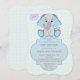 Design único com um elefante bebê giro em forma de gradiente de cinza azul para texto, em fundo bolinhas azul. Use a ferramenta Personalizar para adicionar suas informações. Veja, também, meu BABY SHOWER CONVIDA diferentes designs Coleção