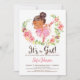 É uma garota! Balé chá de fraldas de bailarina rosa e castanha/bailarina. Fundo de aquarela e striped para trás.