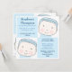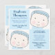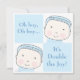 Um doce design com dois meninos felizes com blocos azuis e brancos em um divertido convite quadrado. Uma imagem muito bonita para receber bebês gêmeos!