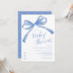 O Cartão de Convite para Chás de fraldas Blue Arco Boy é um design encantador e encantador, perfeito para celebrar a chegada de um bebê. Este convite combina uma estética suave e masculina com elementos clássicos para criar um anúncio convidativo e memorável. A peça central do design é um grande arco azul, renderizado em um belo estilo de aquarela. Este arco de coquete adiciona um toque de elegância brincalhão, capturando perfeitamente a alegria e a doçura de um chá de fraldas. O efeito aquarela confere ao arco uma aparência suave e delicada, melhorando a sensação geral de calor e ternura. O convite apresenta tipografia de script, que adiciona um toque pessoal e elegante ao texto. O guião fluente e gracioso complementa o arco de aquarela, criando um design harmonioso e visualmente atraente. Seguindo o tema, o fundo apresenta um padrão sutil de arco, adicionando uma camada de textura e interesse sem sobrecarregar os principais elementos. Este padrão é projetado em estilo pré-disquete, evocando um sentido de encanto clássico e sofisticação. O uso de arcos em todo o design gravatas junta tudo, reforçando o tema do chá de fraldas de forma coesa e na moda. A paleta de cores é composta principalmente por blues e brancos macios, aprimorando a estética masculina e delicada. Este Cartão de Convite para Chás de fraldas Blue Arco Boy é perfeito para aqueles que buscam uma mistura de simplicidade clássica e elegância divertida. Seus elementos de aquarela, tipografia de script e tema de arco coeso fazem dele uma escolha ideal para um chá de fraldas que valoriza charme, sofisticação e um toque de capricho.