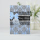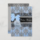 Convite para Chás de fraldas. Azul, preto e prata. Bonito damask com arco azul e joias. Zazzle exclusivo. Por favor, note: todas as imagens planas, elas não têm arcos reais ou joias!!