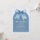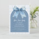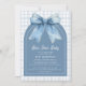lue Jean Baby Boy Chá de fraldas Invitation Comemore o mais doce do caminho com nosso convite à Blue Jean Baby Boy! Apresentando um grande e belo arco denim, gingham azul nítido e tipografia moderna, este design capta perfeitamente o charme rústico e vibrações acolhedoras de um chá inspirado no país. Personalize-o num instante com o nosso modelo fácil de usar - é tão simples como o riso de um bebê! Quer você esteja planejando um churrasco no quintal, um almoço aconchegante, ou um clássico baluarte de bebês, este convite dá o tom para um dia cheio de amor, risos, e doces pontapés de bebê. Pegue suas botas e se prepare para receber seu pequeno estilo! 👶 💙 🍼